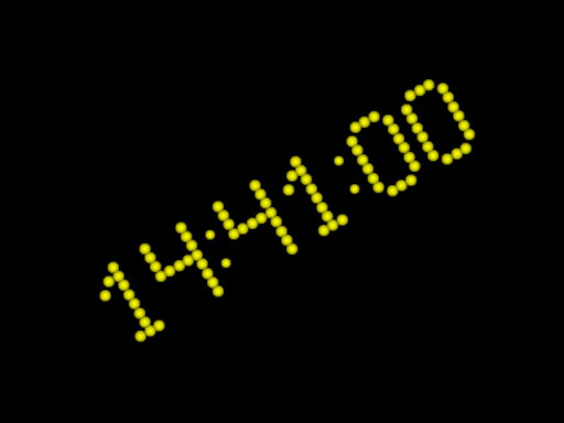 This screensaver shows on your screen 3D clock (time format - HH:MM:SS) rotating, digits are constructed from small balls. You may choose color of digits (balls), speed and rotation axis. Download more free screensavers here!
