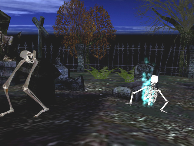 A deserted mansion on the hill suddenly came alive! It's Halloween and all the restless creatures of the night are on a wild rampage. Vampire bats circling in the air are looking for prey, Jack O' Lanterns have gone crazy and there is some kind of odd celebration going on inside. Will you dare enter? The welcome sign on the gate hardly inspires any hope and the cemetery in the backyard is not heart-warming either. The weather seems to play along with rain and lightning. A true atmosphere of haunted Halloween with all the favorite characters in the most realistic 3D setting is what this fabulous animated screensaver has to offer.